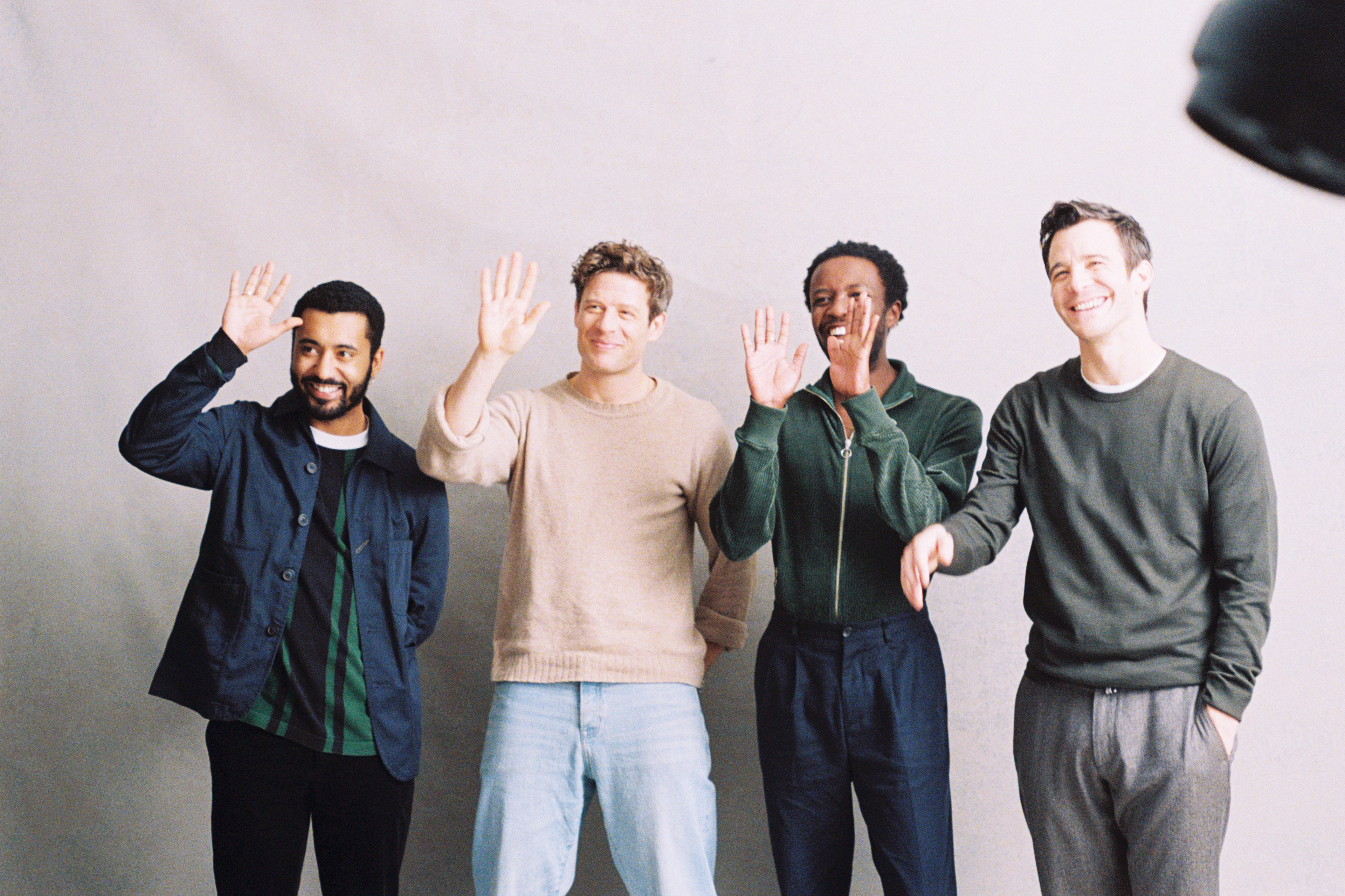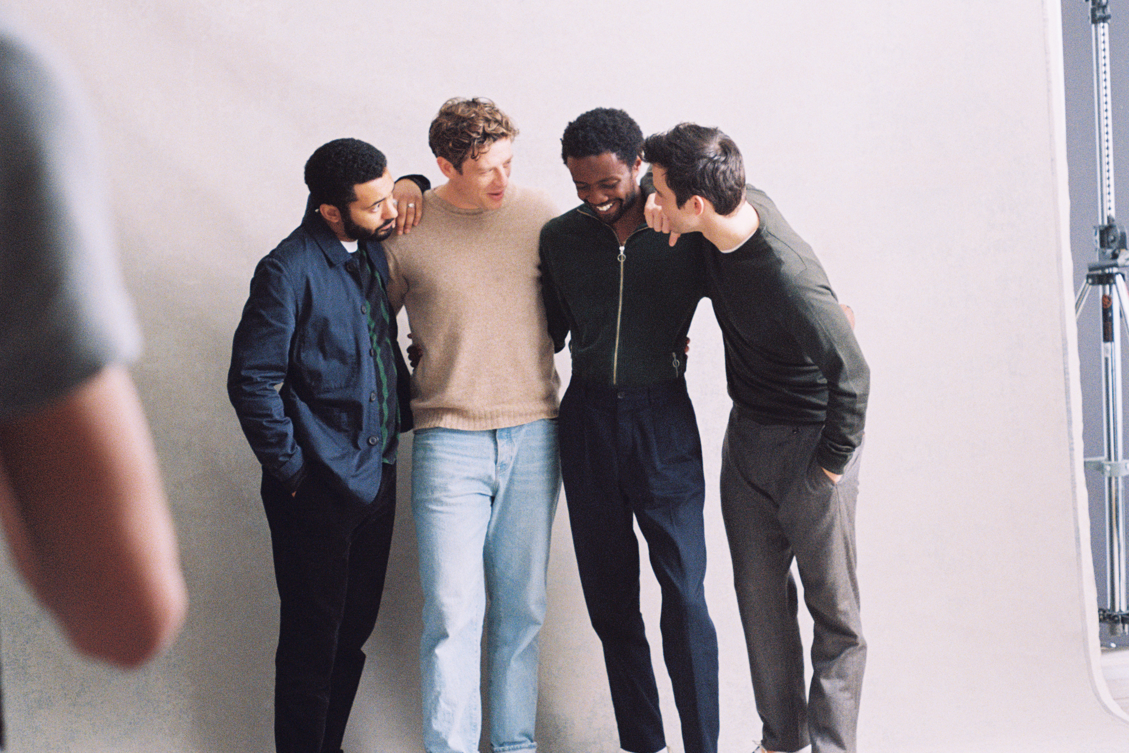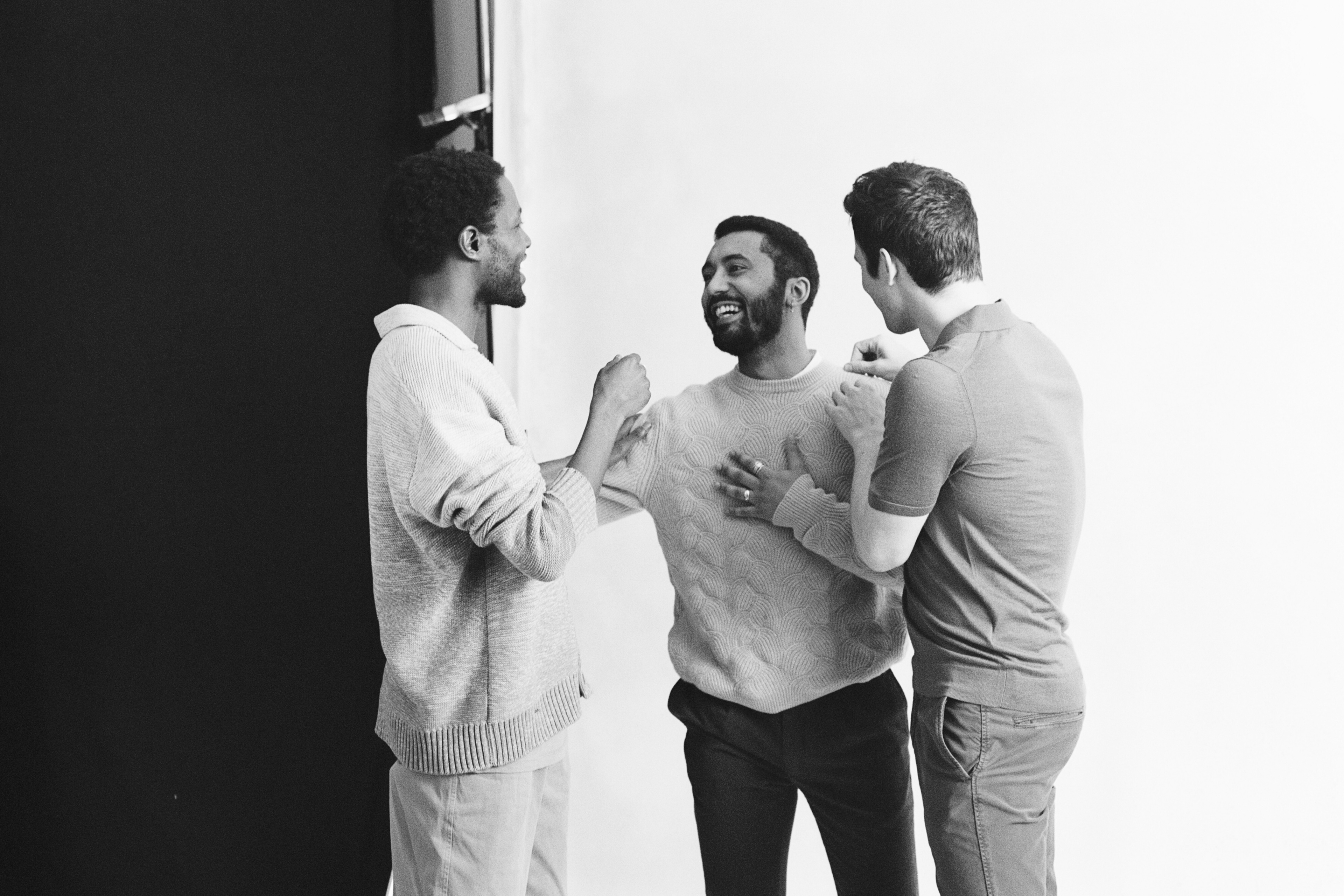 Behind the scenes photography of A Little Life photoshoot, November 2022. Featuring James Norton, Luke Thompon, Omari Douglas Zach Wyatt and director Ivo Van Hove.